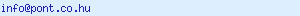 Kössön közvetlenül uj üzleti kapcsolatokat! | | Termékek: | | | E-mail cím: |  | | Honlap: | www.portal.pont.co.hu | | Látogatók száma: | adatlap: 76; WEB oldal: 124 | | Facebook: | Itt "lájkolhatja", ha Ön kedveli a pont.co vállalkozás - Tóth Tibor céget.